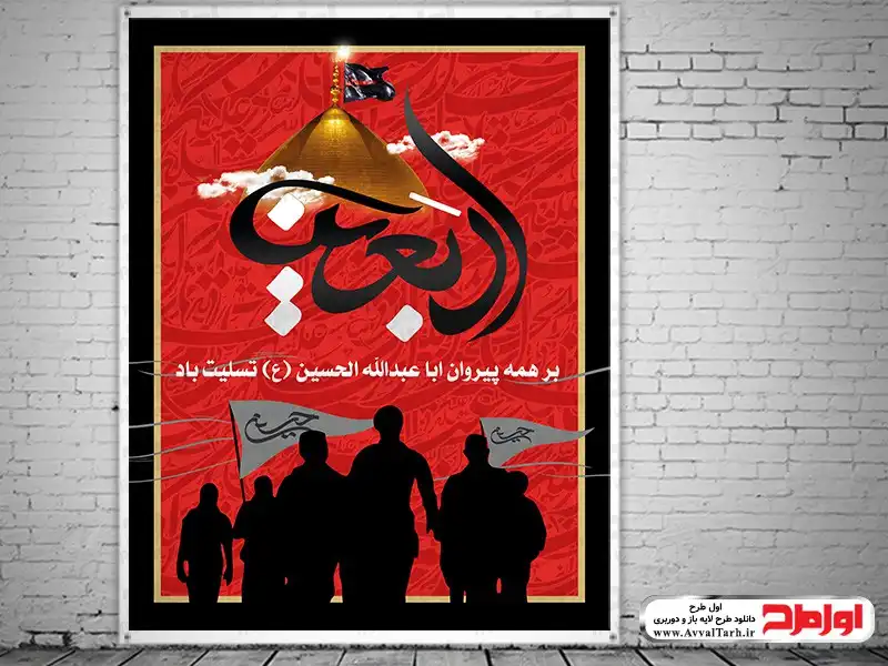 طرح لایه باز پوستر اربعین، با فرمت psd در نرمافزار فتوشاپ قابل ویرایش است.