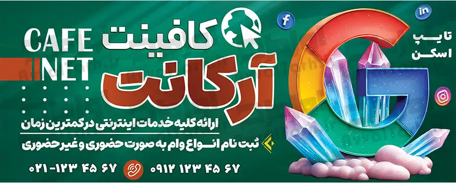 طرح لایه باز تابلو کافی نت و خدمات اینترنتی، این طرح را با کیفیت بالا چاپ کرده و به عنوان یک ابزار تبلیغاتی کاربردی و شیک از آن استفاده کنید. در طرح لایه باز بنر مغازه خدمات اینترنتی از تصویر وکتوری لوگو گوگل، تصویر آیکون شبکه های اجتماعی و شیپ با کیفیت استفاده شده است. طراح به راحتی می تواند در نرمافزار فتوشاپ المان های مختلف این طرح را ویرایش کرده و جزئیات دلخواه خود را به آن اضافه کند.
