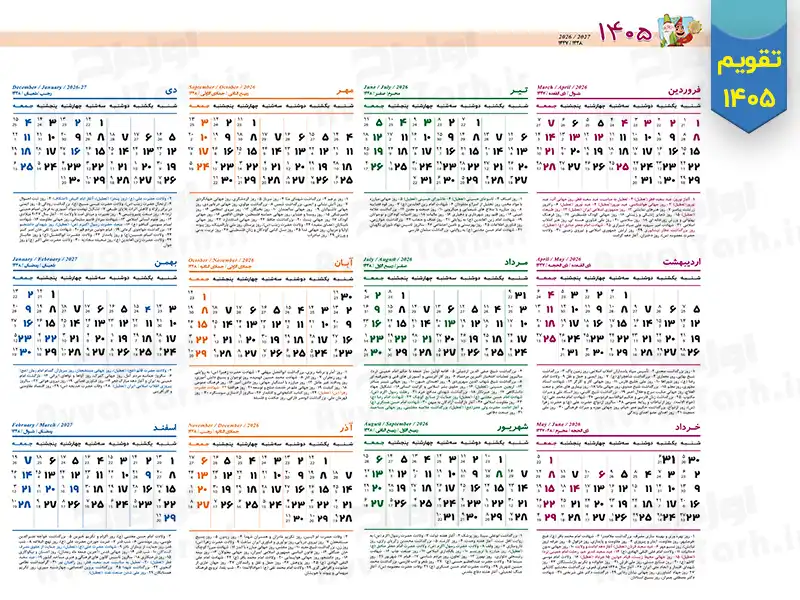 ویژگیهای مهم طرح لایه باز تقویم 1405 چیست؟
