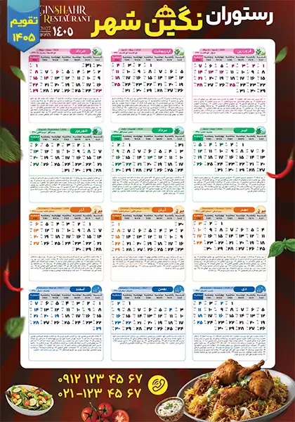 ابعاد طرح psd تقویم دیواری رستوران (1405)