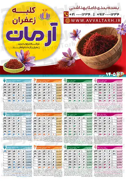 ابعاد طرح psd تقویم دیواری زعفران فروشی (1405)