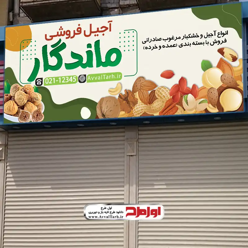مشخصات فنی طرح psd تابلو فروش آجیل و خشکبار